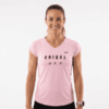 Camiseta técnica multi-deporte de mujer manga corta estilo manga ranglan con cuello de pico.